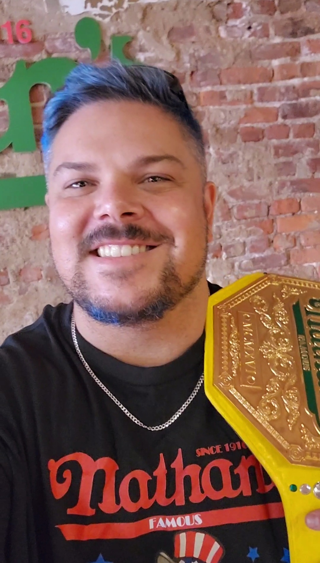 Hey Fam, It’s Cam The Cuddler! Back from New York City. Once again, I participated in the Nathan’s Famous Hot Dog Contest as a chugger VS superstar Eric Badlands Booker. Checkout his YouTube channel: BadlandsChugs to view our chugging highlights. Leading up to the event, my sideshow friends and I put in countless hours of training so that we’d be ready to put on an epic performance in front of thousands at Coney Island in New York. To prepare, I lost weight, strengthened my neck muscles, and perfected rapid drinking techniques. By July 4th, I was in peak form. #hungyandfocused The rules of the chugging contest are simple, we had one minute to drink a gallon of lemonade. First to finish the over 8 lb drink wins The Title. This year’s Event was special because bragging rights were on the line to go with a new one-of-a-kind Major League Eating Championship Belt!